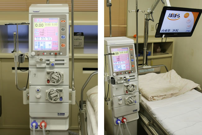 当院では、患者さんの病態と必要性に応じてより良い透析療法を提供するため、 最先端のオンラインHDF (on-line HDF)システムを導入致しました。